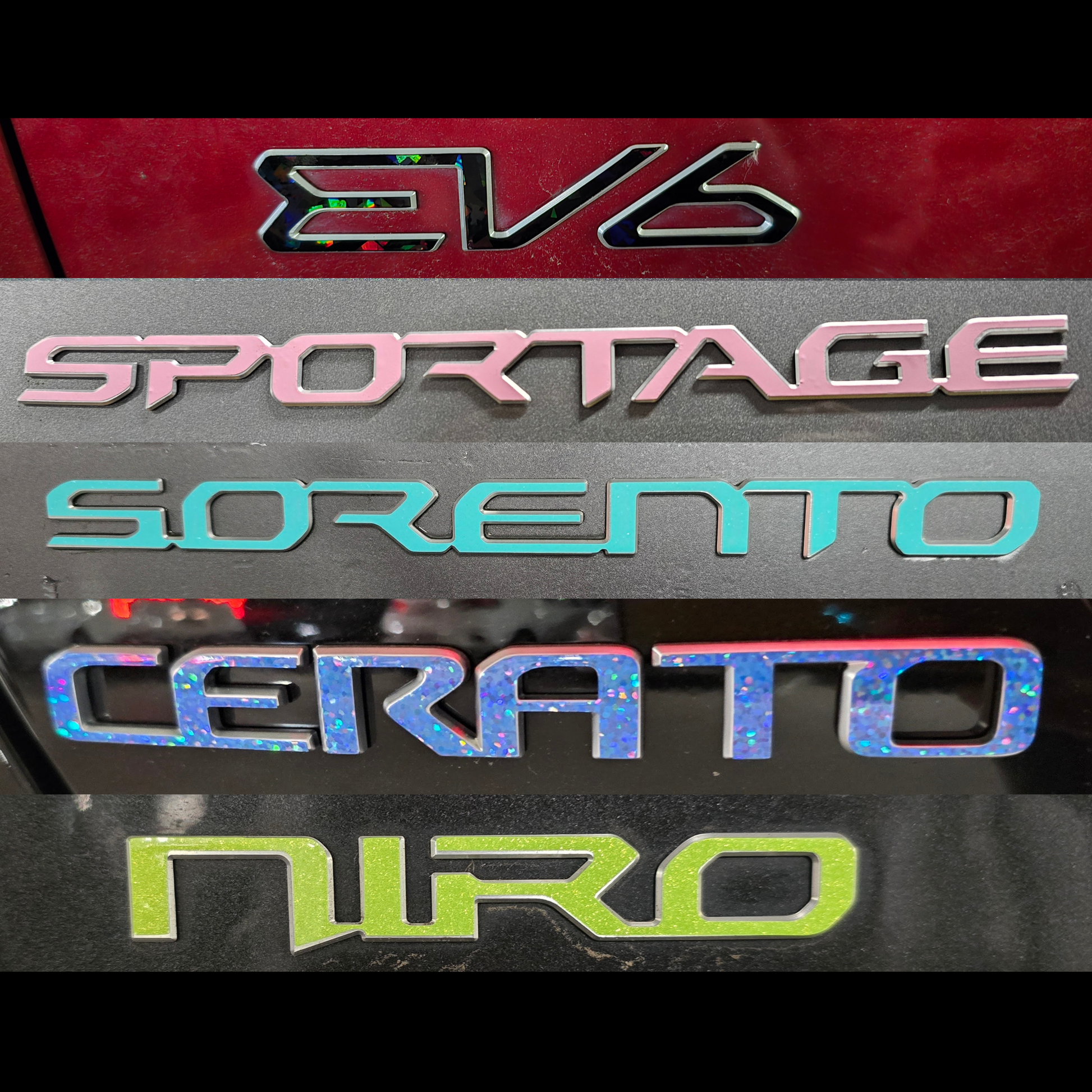 Model Badge Overlay Decal | Fits Various Kia Vehicle Badges